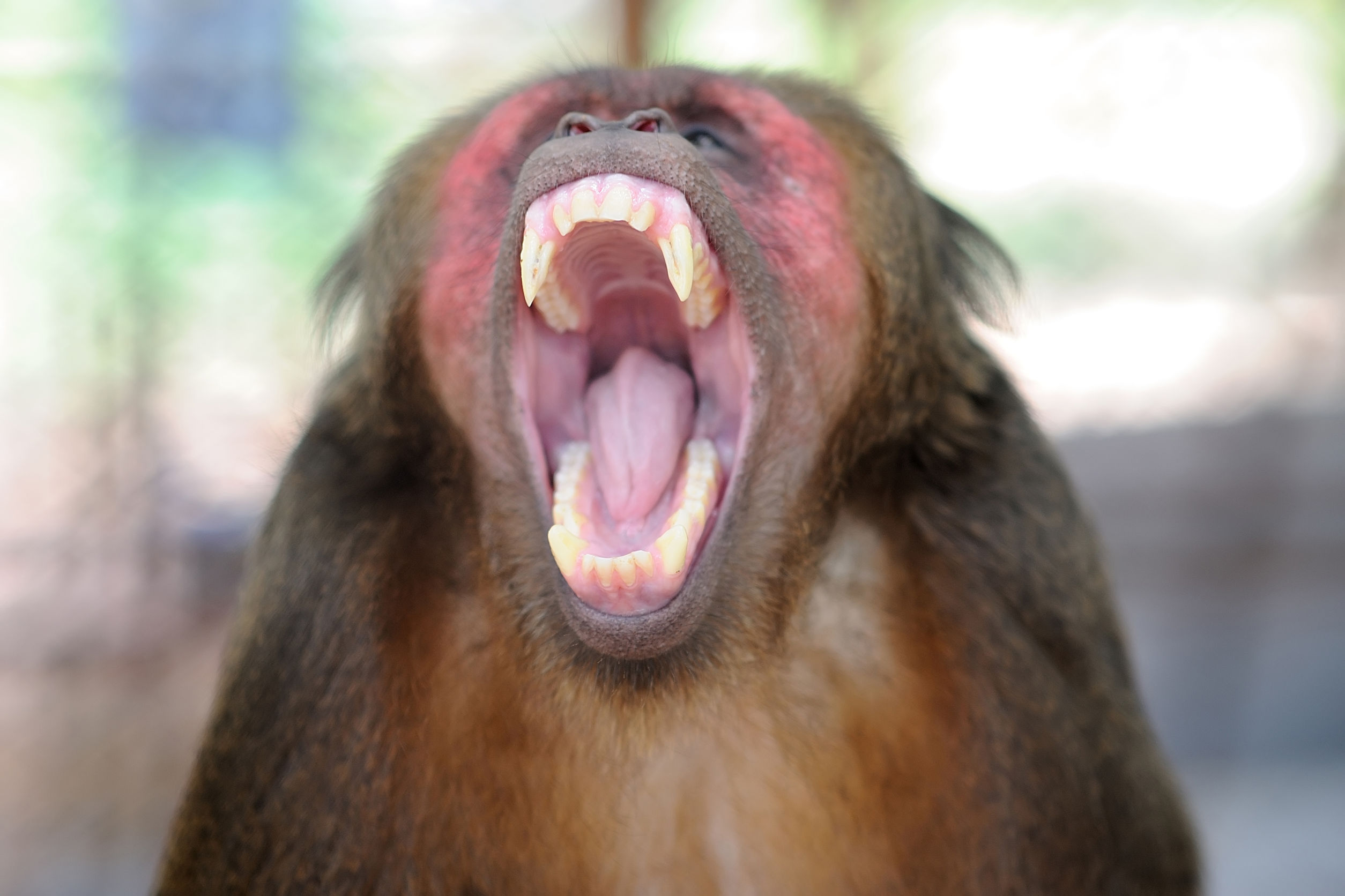 Premium Photo | Funny aggressive monkey with a large open mouth ...